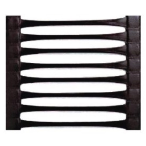 單向拉伸的土工格柵是由高分子聚合物經(jīng)擠出壓成薄板再沖規(guī)則孔網(wǎng),然后縱向拉伸而成。這種過程中使高分子成定向線性狀態(tài) 并形成分布均勻、節(jié)點強(qiáng)度高的長橢圓形網(wǎng)狀整體性結(jié)構(gòu)。此種結(jié) 構(gòu)具有相當(dāng)高的拉伸強(qiáng)度和拉伸模量,給土壤提供了理想的力的承 擔(dān)和擴(kuò)散的連鎖系統(tǒng)。該產(chǎn)品拉伸強(qiáng)度大( >150Mpa),適應(yīng)各 種土壤,是目前廣為采用的加筋加固材料。